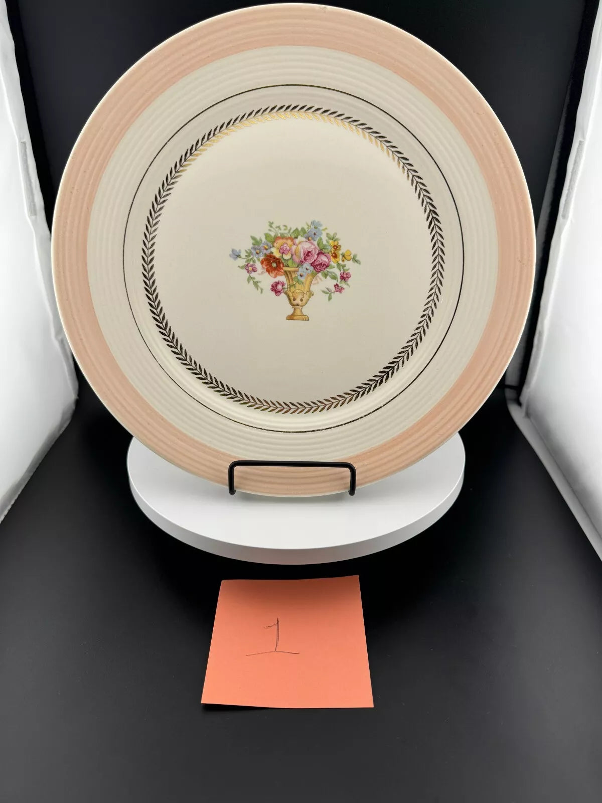 Lovely 22K gold "Treasure Island" pattern by American Limoges, out of Sebring Ohio.  Soft peach, natural white, gold and a multicolor floral arrangement.  Design sold in the 1940-50's.  Five available, sold individually.