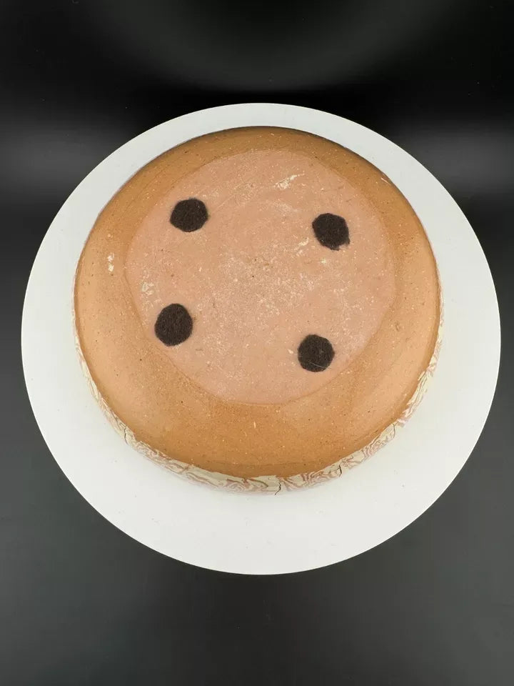 Rustic and primitive handmade, unmarked pottery bowl. Earthy terracotta color with band of swirling natural white. Not a watertight or food use bowl, but a great little decorative piece.